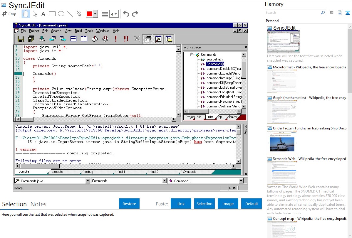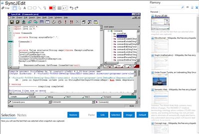 Flamory helps you capture and store screenshots from SyncJEdit by pressing a single hotkey. It will be saved to a history, so you can continue doing your tasks without interruptions. Later, you can edit the screenshot: crop, resize, add labels and highlights. After that, you can paste the screenshot into any other document or e-mail message.