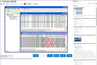 Flamory helps you capture and store screenshots from Tail for Win32 by pressing a single hotkey. It will be saved to a history, so you can continue doing your tasks without interruptions. Later, you can edit the screenshot: crop, resize, add labels and highlights. After that, you can paste the screenshot into any other document or e-mail message.