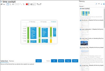 Flamory provides advanced bookmarking for time cockpit. It captures screen, selection, text on the page and other context. You can find this bookmark later using search by page content or looking through thumbnail list.