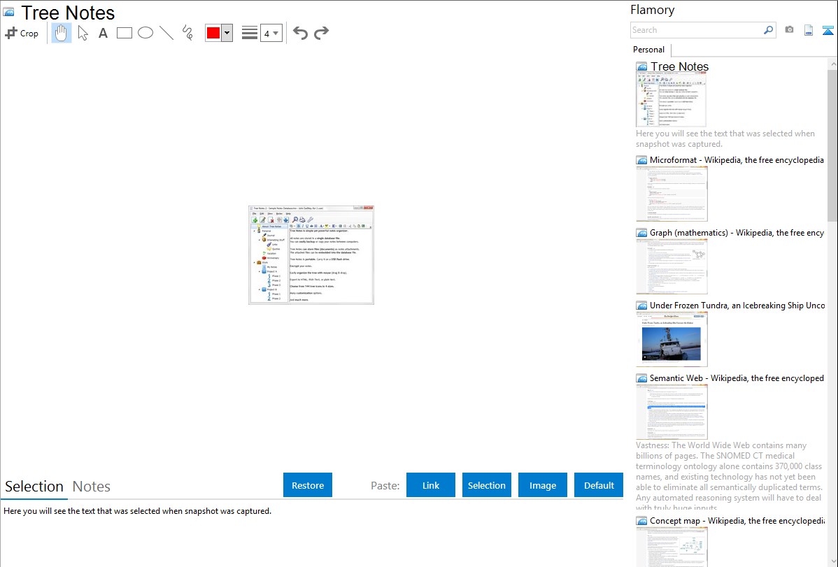 Flamory helps you capture and store screenshots from Tree Notes by pressing a single hotkey. It will be saved to a history, so you can continue doing your tasks without interruptions. Later, you can edit the screenshot: crop, resize, add labels and highlights. After that, you can paste the screenshot into any other document or e-mail message.