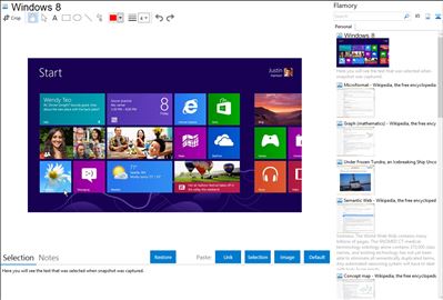 Flamory helps you capture and store screenshots from Windows 8 by pressing a single hotkey. It will be saved to a history, so you can continue doing your tasks without interruptions. Later, you can edit the screenshot: crop, resize, add labels and highlights. After that, you can paste the screenshot into any other document or e-mail message.