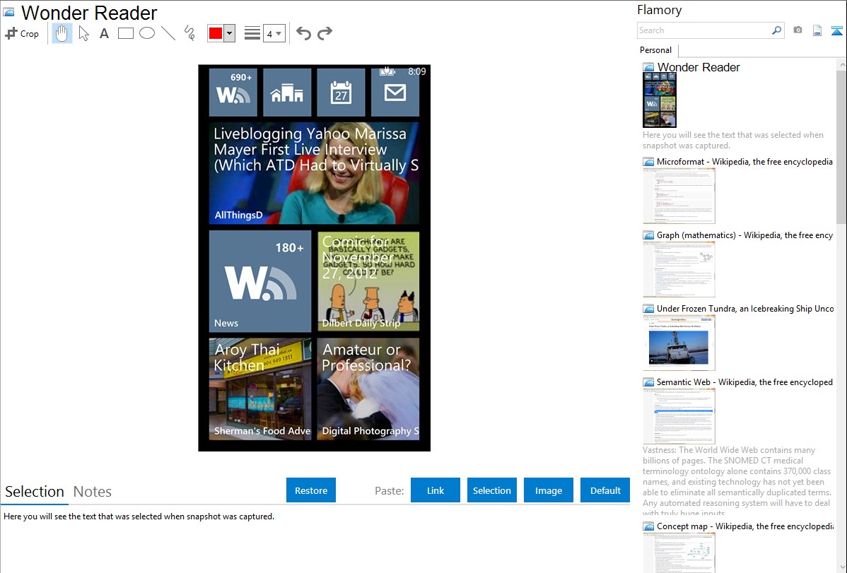Flamory helps you capture and store screenshots from Wonder Reader by pressing a single hotkey. It will be saved to a history, so you can continue doing your tasks without interruptions. Later, you can edit the screenshot: crop, resize, add labels and highlights. After that, you can paste the screenshot into any other document or e-mail message.